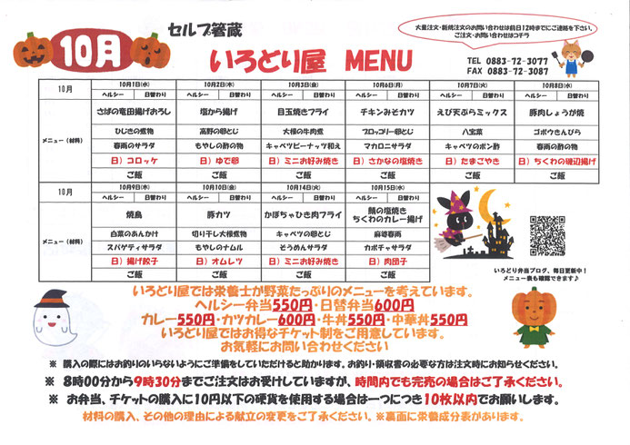 10月9日、今日の日替わり弁当は、焼き鳥と揚げ餃子でした。